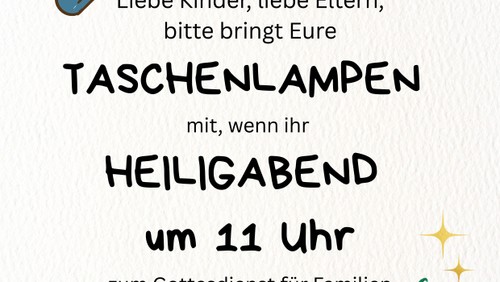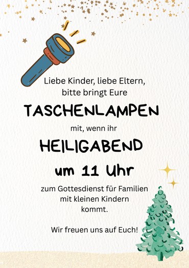 Heiligabend Gottesdienst für kleine Kinder und ihre Familien (bitte Taschenlampen mitbringen!)